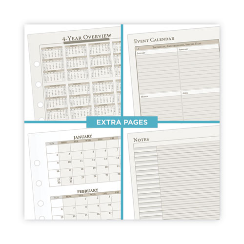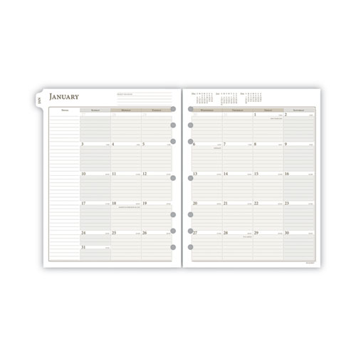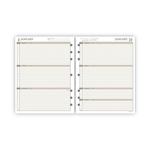 Classically designed refill set includes a full year of both weekly and monthly planning spreads. Hourly appointment times and ruled daily blocks help to organize a busy schedule.