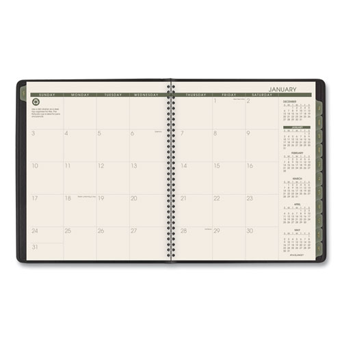 Show you care by choosing a monthly planner made from recycled materials. Tabbed one month per two-page spread.