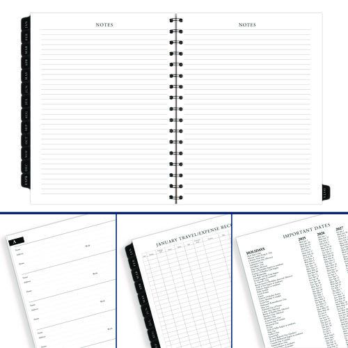 Covers a 12-month date range from January to December with Julian dates. High-quality paper features superior ink bleed resistance. Two page per week layout has hourly appointments on weekdays from 8AM to 5PM. One month per two-page spread has unruled daily blocks and past and future month calendars for quick reference. 6.5" x 8.57". Planner refill is wirebound and easily inserts into the AT-A-GLANCE Executive Weekly Monthly Planner, sold separately.