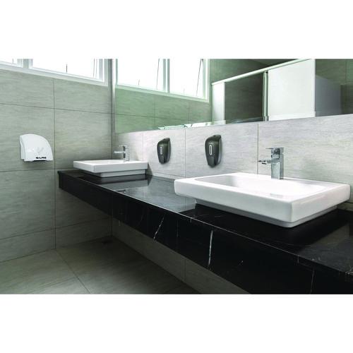 - Wall mounted dispenser enhances commercial or public setting.