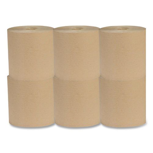 Recycled Hardwound Paper Towels, 1-Ply, 7.88" x 800 ft, 1.6 Core, Kraft, 6 Rolls/Carton