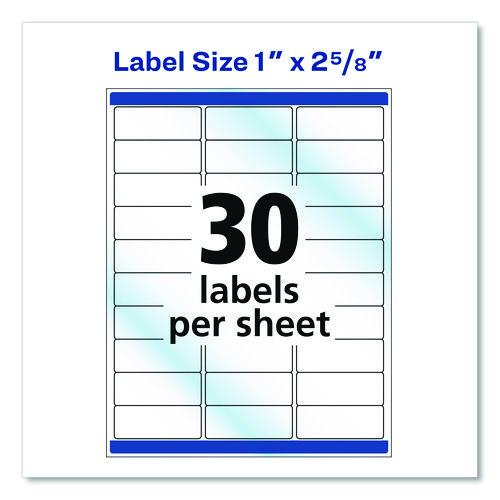 Glossy Clear Easy Peel Mailing Labels w/ Sure Feed Technology, Inkjet/Laser Printers, 1 x 2.63, 30/Sheet, 10 Sheets/Pack
