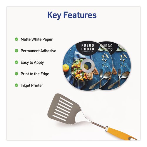Customize your CDs for easy identification, organization, or to add eye-catching graphics. Labels will not lift, peel or wrinkle in CD players and drives. Labels feature a unique, patented design which centers labels using a standard jewel case. Labels feature Print-to-the-Edge capability. Easy to customize with free designs, QR codes, and templates from Avery® Design & Print. 8 1/2" x 11" sheets.