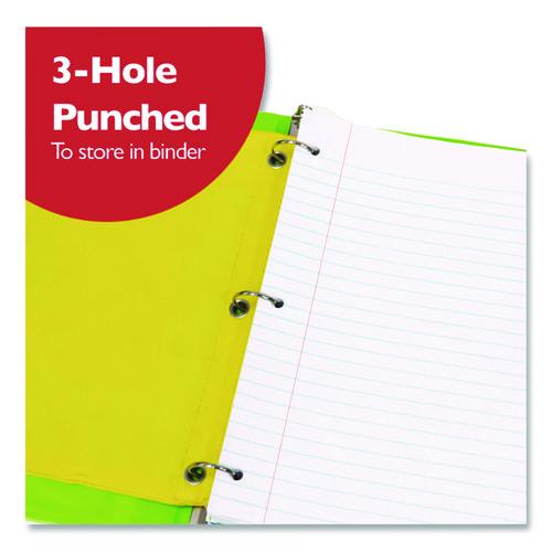 Loose leaf filler paper. Three-hole punched to fit in standard binders. Ruled to keep handwriting neat and organized. Processed chlorine-free. Acid-free.