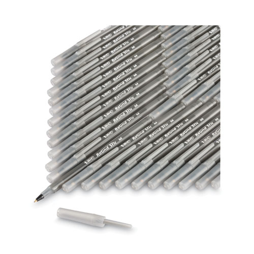Round Stic Xtra Life Ballpoint Pen, Stick, Medium 1 mm, Black Ink, Translucent Black Barrel, Dozen