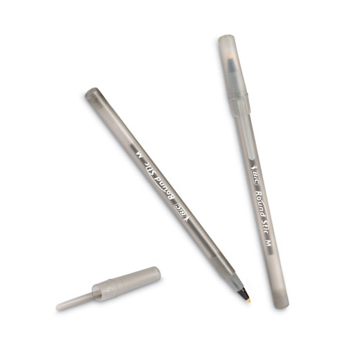 Round Stic Xtra Life Ballpoint Pen Value Pack, Stick, Medium 1 mm, Black Ink, Translucent Frost Barrel, 60/Box