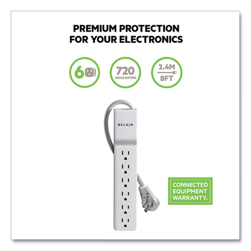 Home/Office Surge Protector with Rotating Plug, 6 AC Outlets, 8 ft Cord, 720 J, White