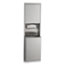 Surface-mounted. Satin-finish stainless steel. Door has tumbler lock. Self-closing panel covers disposal opening. Removable, leak-proof, 0.5-gal plastic receptacle.