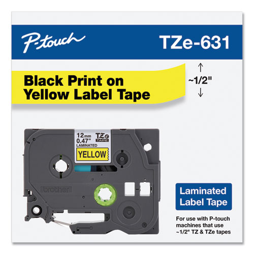TZe Standard Adhesive Laminated Labeling Tape, 0.47" x 26.2 ft, Black on Yellow