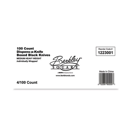 Dispens-a-Knife, Individually Wrapped, Mediumweight Knife, Plastic, Black, 100/Box