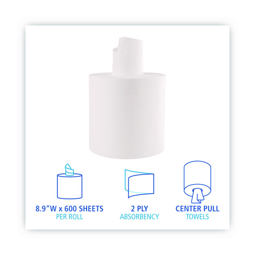Center-Pull Roll Towels, 2-Ply, 7.6 x 8.9, White, 600/Roll, 6/Carton
