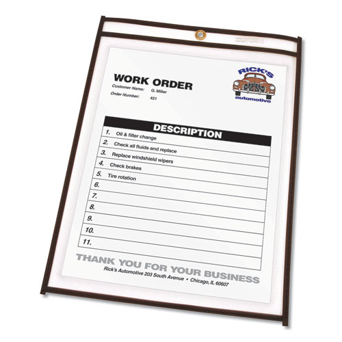Stitched Shop Ticket Holders, Super Heavy-Duty, Top Load 8.5 x 11 Insert, Clear Front, Black Border, 25/Box