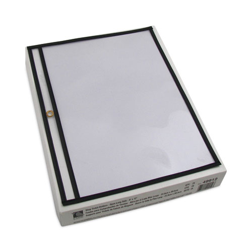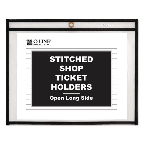 Stitched Shop Ticket Holders, Super Heavy-Duty, Top Load 12 x 9 Insert, Clear Front, Black Border, 25/Box