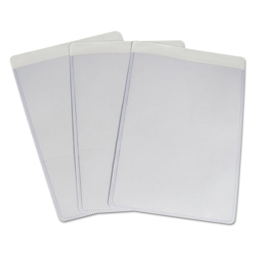 Self-Adhesive Poly Shop Ticket Holders, Super Heavy-Duty, Top Load 5 x 8 Insert, Clear Front, 50/Box