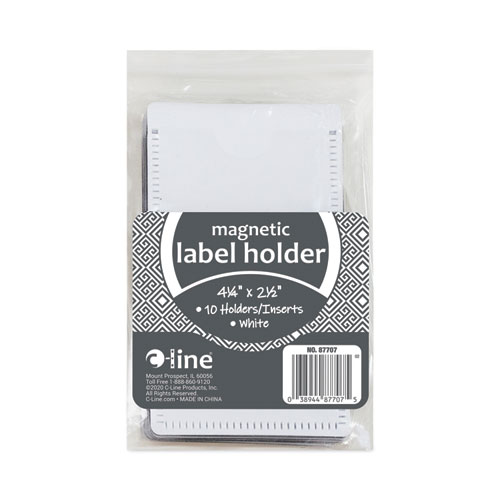 Slap-Stick Magnetic Label Holders, Side Load, 4.25 x 2.5, White, 10/Pack