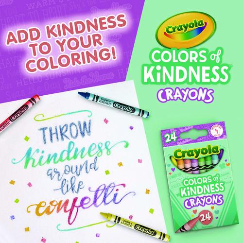 Spread the love with these Crayola Colors of Kindness crayons. Packaged in an adorable flip-top box, this crayon set includes 24 Crayola Crayons with four recently introduced colors and special-edition words of kindness printed on each crayon. A thoughtful gift idea for kids and adults, these crayons encourage everyone to create with love. Each Crayola crayon in this set is double-wrapped for added strength and durability.