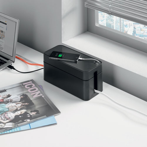 CAVOLINE Cable Management Box, 9.6" w x 4.96" d x 4.56" h, Small, Charcoal