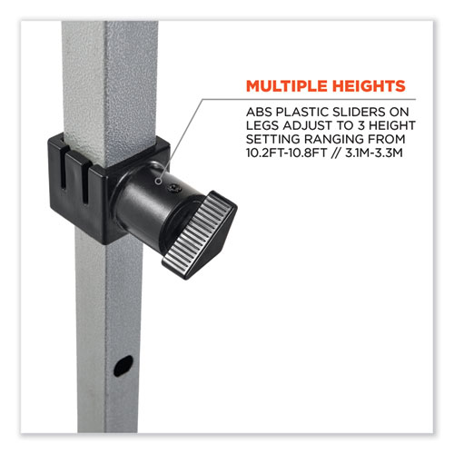 - ABS plastic sliders on legs adjust to three height settings ranging from 10.2 ft to 10.8 ft.