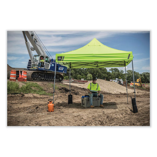 The SHAX 6000C Replacement Canopy is lightweight, durable and used to fit the 10 ft x 10 ft SHAX 6000 tent frame. A great way to change out worn and faded old canopy tops to keep workers in the shade and sheltered from the weather. Made with thick, high-quality 300-denier polyester material, this canopy also boasts waterproofing polyurethane coating (PU) and UV treatments as well as reinforced corners to withstand tough conditions. A double-vented top allows maximum air flow, while a hi-vis lime option and silver coatings provide increased visibility on busy job sites or at events.