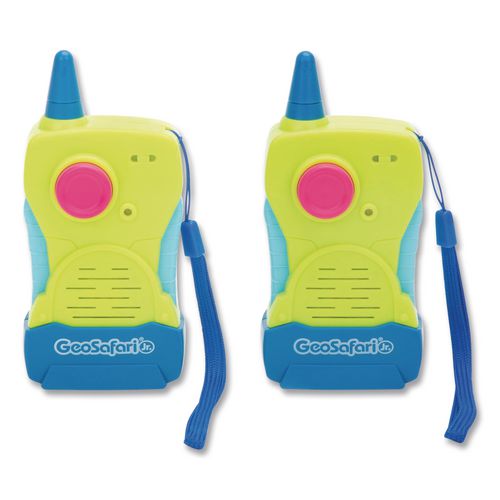 - With just one button and a secure kid-to-kid radio channel, these walkie talkies enable junior explorers to stay in touch all by themselves; press the button to connect, then you're ready to talk!