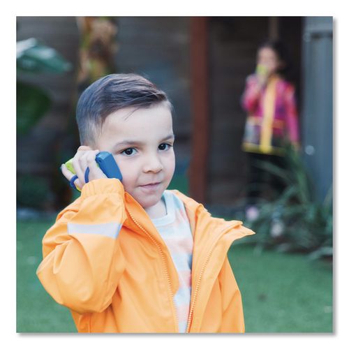 Copy that! The world's simplest walkie talkies feature a single button for easy use, a secure kid-to-kid radio channel, wrist strap, 300 ft range and durable design. Includes two walkie talkies, guide and bonus Spark More Play™ activities.