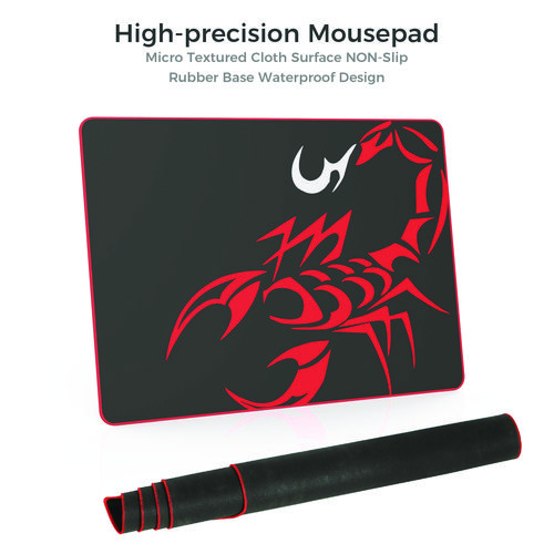 - Carbon fiber textured desktop is scratch resistant, waterproof, and has space for your entire setup.