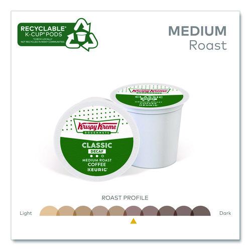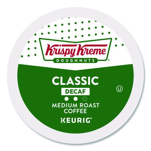 Enjoy a delicious cup any time of day with this decaf medium roast. Sip a cup that's full of personality and flavor. This classic decaf is richly roasted, with a satisfying flavor. Convenient K-Cups® make a perfect accompaniment to your favorite Krispy Kreme doughnuts.
