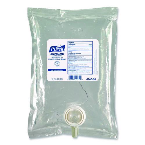 Advanced Hand Sanitizer Green Certified Gel Refill, For CS2 Dispensers, 1,000 mL, Fragrance-Free, 8/Carton