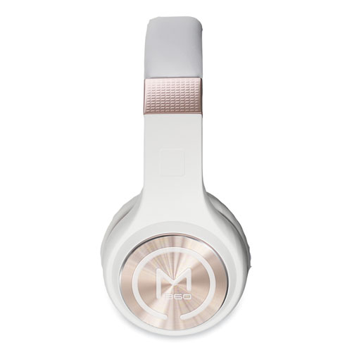 SERENITY Stereo Wireless Headphones with Microphone, 3 ft Cord, White/Rose Gold