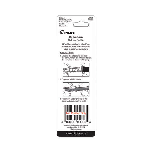 Refill for Pilot B2P, Dr Grip, G2, G6, MR Metropolitan, Precise BeGreen and Q7 Gel Pens, Extra-Fine Tip, Black Ink, 2/Pack