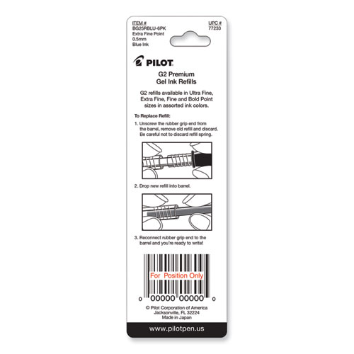 Refill for Pilot B2P, Dr Grip, G2, G6, MR Metropolitan, Precise BeGreen and Q7 Gel Pens, Extra-Fine Tip, Blue Ink, 2/Pack