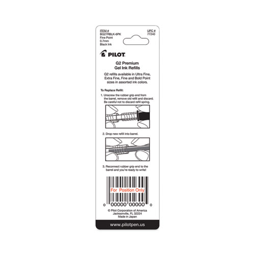 Refill for Pilot B2P, Dr Grip, G2, G6, MR Metropolitan, Precise BeGreen and Q7 Gel Pens, Fine Tip, Black Ink, 2/Pack