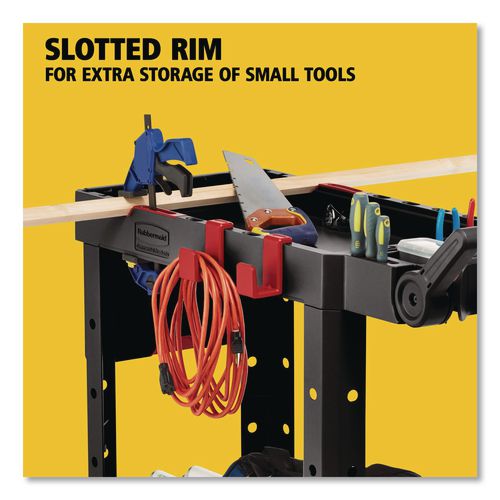 - Slots around rim of upper shelf for storage of small tools like wrenches, pliers or screwdrivers.