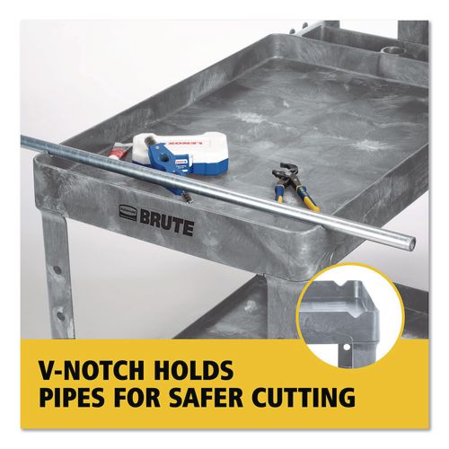 BRUTE Heavy-Duty Ergo Handle Utility Cart, Plastic, 2 Shelves, 750 lb Capacity, 26" x 55" x 33.25", Gray