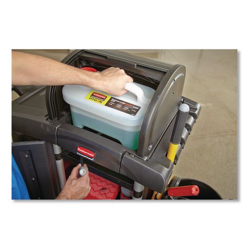 Clean more square feet in less time with this handy caddy. Clean up to 10,000 square feet with its 2-gallon capacity, reducing number of trips to supply closet. Refills Rubbermaid Pulse™ (sold separately) up to 12 times. Designed for secure transportation and efficient, on-the-go refill.
