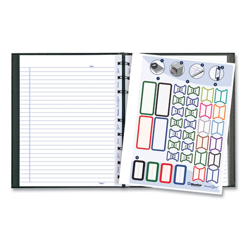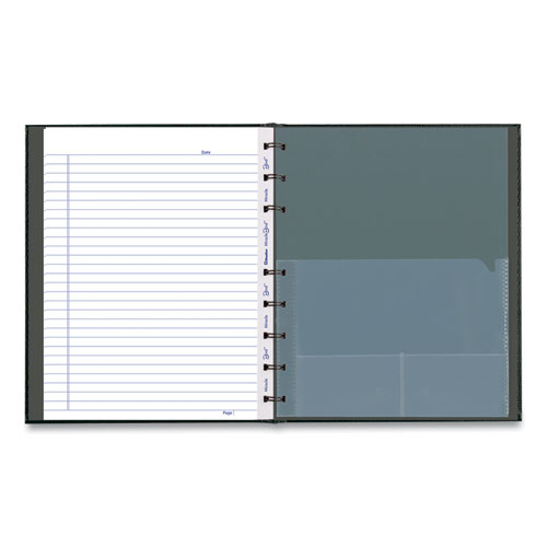 Innovative sheet binding allows pages to be removed and reinserted to fit your personal needs. Both sides of microperforated pages are ruled with a margin printed with vegetable oil-based ink. Repositionable vinyl pocket. Index sheet and self-adhesive tabs. Sturdy twin-wire binding and hard lizard-look cover.