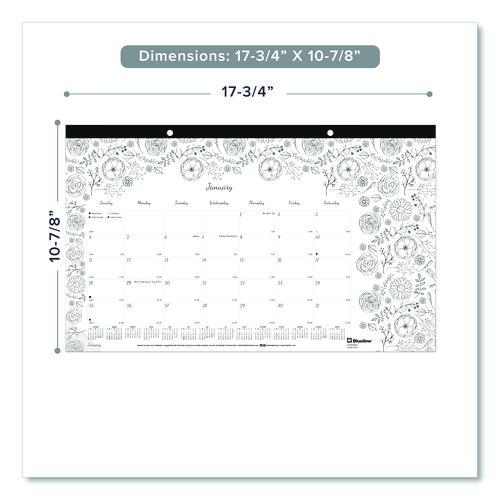 Monthly Desk Pad Calendar, Monthly Coloring Artwork, 17.75 x 10.88, Black Binding, Clear Corners, 12-Month (Jan to Dec): 2026
