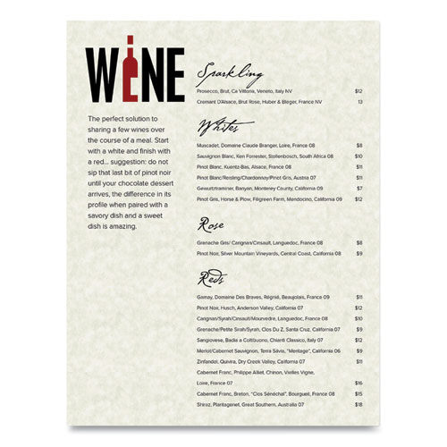 Create professional documents. The parchment finish produces a sophisticated appearance, while the 24-pound material delivers a high-quality feel. Acid-free and lignin-free, so ink won't life off printed pages, allowing for documents to be archived.