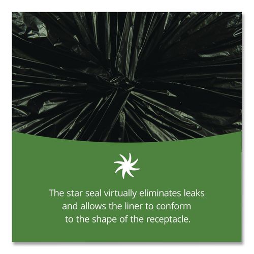 Recycled trash bags are multi-use and strong—puncture and tear resistant. Made from recycled materials. Stands up to heavy workloads while minimizing plastics in waste systems.
