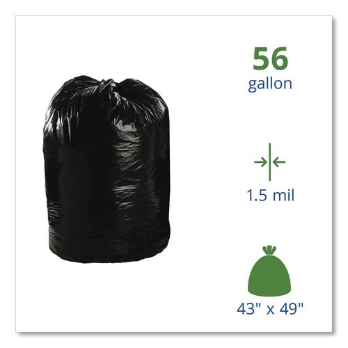 Recycled trash bags are multi-use and strong—puncture and tear resistant. Made from recycled materials. Stands up to heavy workloads while minimizing plastics in waste systems.