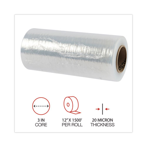 Handwrap Stretch Film, 12" x 1,500 ft Roll, 20 mic (80-Gauge), Clear, 4/Carton