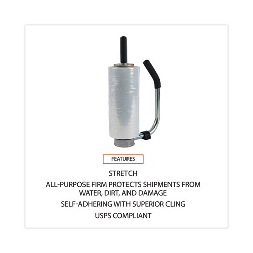 All-purpose hand film protects shipments from water, dirt, and damage caused by excess movement and poor package handling. The film provides exceptional toughness and superior cling when wrapped around shipping content. Constructed from a self-adhering material, each layer of film clings to the next for added strength. Rolls feature a 3" core. Use with Universal® Adjustable Hand Dispensers (sold separately) for easy application.