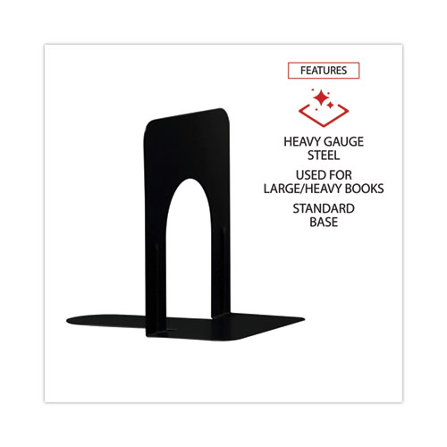 Economy Bookends, 4.75 x 5.25 x 5, Heavy Gauge Steel, Black, Pair