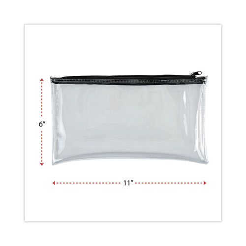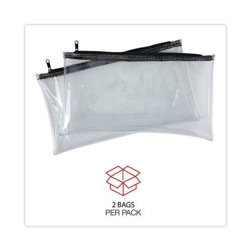 Zippered Wallets/Cases, Polyethene, Toothed Zipper Closure, 11" x 6", Clear/Black, 2/Pack