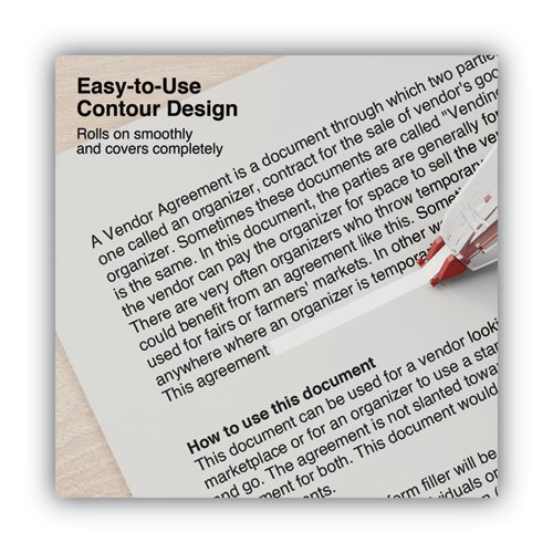 Correcting mistakes couldn't be easier. Convenient, easy-to-use design handles both single- and multiple-line corrections. Film-based white correction tape completely covers print or pen marks in one pass, ensuring uniform results. Transparent casing allows you to keep an eye on your remaining supply levels. Non-refillable.