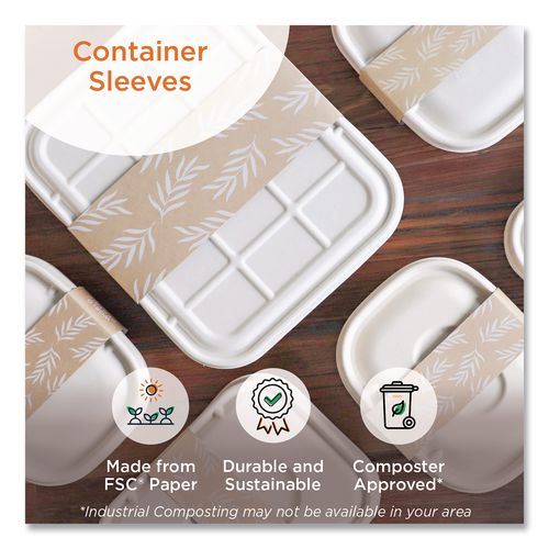 Fiber Container Sleeves, World Centric Leaf Design, 7.5 x 10 x 3.25, Natural, Paper, 800/Carton